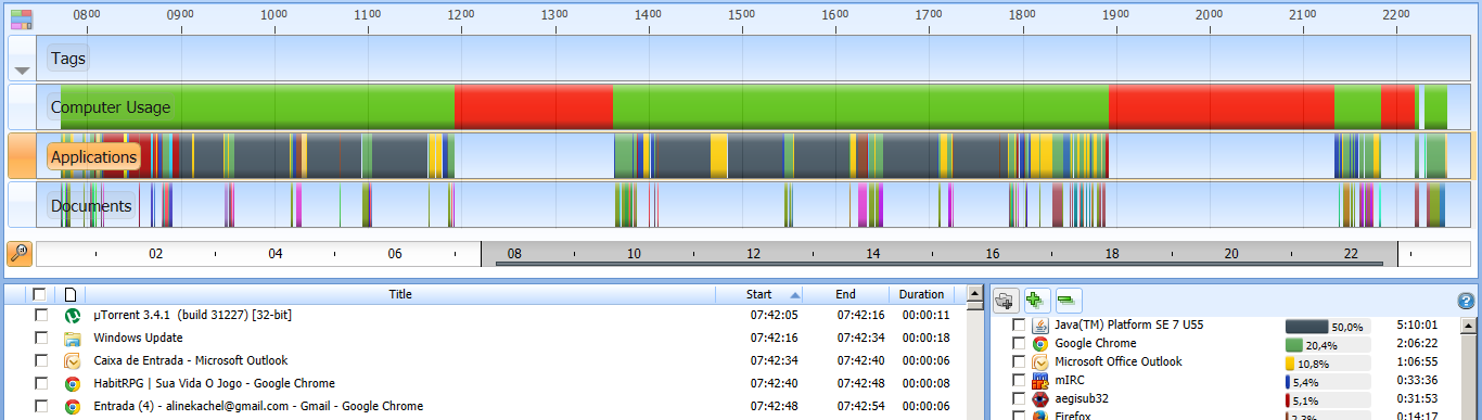 Ao contrário dos programas que recomendei até agora (Gondendict, Pomodoro do Arara e Archivarius), o ManicTime não é um programa útil em si. No entanto, é um programa que eu considero divertido. Ele controla o tempo que você passa em cada programa no computador, com direito a dizer quanto tempo se passou em cada site. Resumindo: ele mede a produtividade e procrastinação.